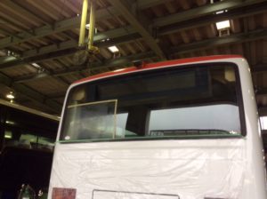 中型バス リアガラス 再生研磨 2018年9月21日 洗シャイン25 バスの窓ガラス磨きも対応しています、洗シャイン25 です。 研磨前は左下の状態が窓全体に広がっていました。 マス目を作り磨き残しの無いように磨きます。 上の画像は最後のマス目を磨く前に撮影したものです。 バスのガラス汚れは乗用車よりも格段に頑固ですが、 良い機材と良い材料を使うことでこのように綺麗に再生出来ます。