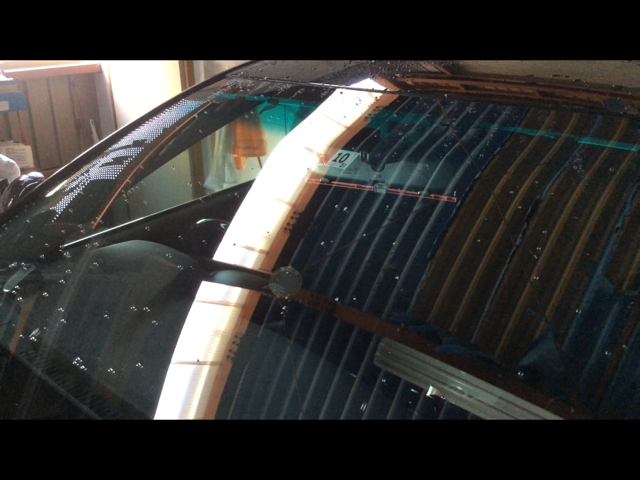 マークXのフロントガラス磨き&撥水コーティングです。