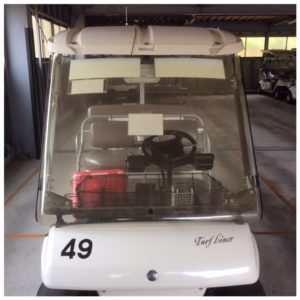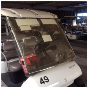 ゴルフカートの風防の劣化、汚れにお困りのゴルフ場様向けのサービスです。